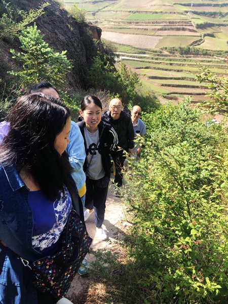 清晨,图书馆职工乘车沿着始建于1935年的G212,经过1989年启用的七道梁隧道,沿着蜿蜒崎岖的道路,翻过七道梁山顶到达目的地,体验了1989年前后和2004年兰临高速通车前后,兰州南出口交通的巨大变迁。在海拔2600多米的的七道梁上,恰逢当天逢雨后天晴、风和日丽,形状奇异的红砂岩、茂密的原始森林、远处旖旎的梯田美景,让馆员们深深心旷神怡,深深体验到“绿水青山就是金山银山”“建设生态文明是实现中华民族伟大复兴中国梦的重要内容”。经过约30公里的车程,图书馆职工抵达位于七道梁北麓,被誉为兰州市的南部屏障和后花园的象狮山,开始登山、游园、开展了多项文体活动,许多馆员走进田间地头,看看美丽的百合梯田,与村里的百合种植户交流,近年来党的富民政策给农村带来的巨变。
