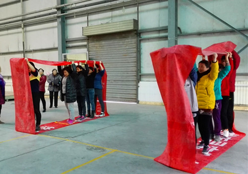 坦克履带,废旧横幅当“履带”,考验团队协作